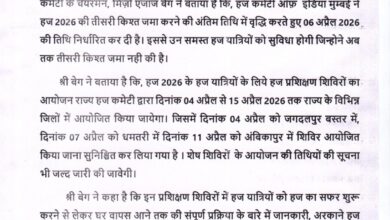 - हज 2026 की तीसरी किश्त 06 अप्रैल तक जमा होगी: मिर्ज़ा एजाज बेग