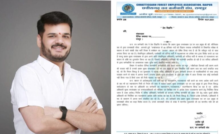 छ.ग. यन कर्मचारी संघ ने प्रेस विज्ञप्ति में बताया कि प्रधान मुख्य वनसंरक्षक एवं वन बल प्रमुख श्री व्ही. श्रीनिवास राव के द्वारा तानाशाही रवैया अपनाते हुये “वनक्षेत्रपाल के 05 प्रतिशत पदों को विज्ञान स्नातक कर्मचारियों से विभागीय परीक्षा के माध्यम से भरने संबंधी सेवा भर्ती नियम में संशोधन का “प्रस्ताव शासन को प्रेषित किया गया है जो कि स्वीकृत पदो के साथ अन्याय किया जा रहा है। सेवानिवृत्त अधिकारी / कर्मचारी को संविदा भर्ती में पदस्थापना का हमेशा संघ द्वारा विरोध करते आ रहा है परन्तु प्रधान मुख्य वनसंरक्षक के द्वारा अपने चहेते सेवानिवृत्त अधिकारी / कर्मचारी को संविदा भर्ती के माध्यम से पदस्थापना कर शासन के राशि का दुरपयोग किया जा रहा है। जिससे अधिकारी/कर्मचारी की पदोन्नति प्रभावित हो रही है एवं संविदा अधिकारी के द्वारा कर्मचारियो पर अनावश्यक दबाव पूर्वक कार्य संपादित कराया जाता है।