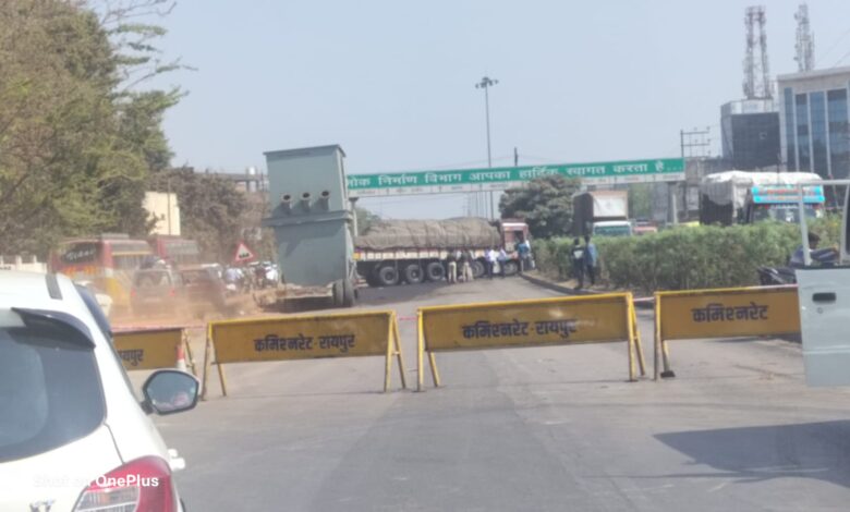 रायपुर PWD ब्रिज के पास एक्सीडेंट, बेकाबू ट्रक डिवाइडर से टकराया, यातायात बाधित हुआ