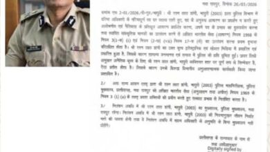 रायपुर। पुलिस महानिरीक्षक रतनलाल डांगी को अखिल भारतीय सेवा(अनुशासन व अपील) नियम 1969 के नियम 3(1)(ए) के तहत प्रदत्त शक्तियों…