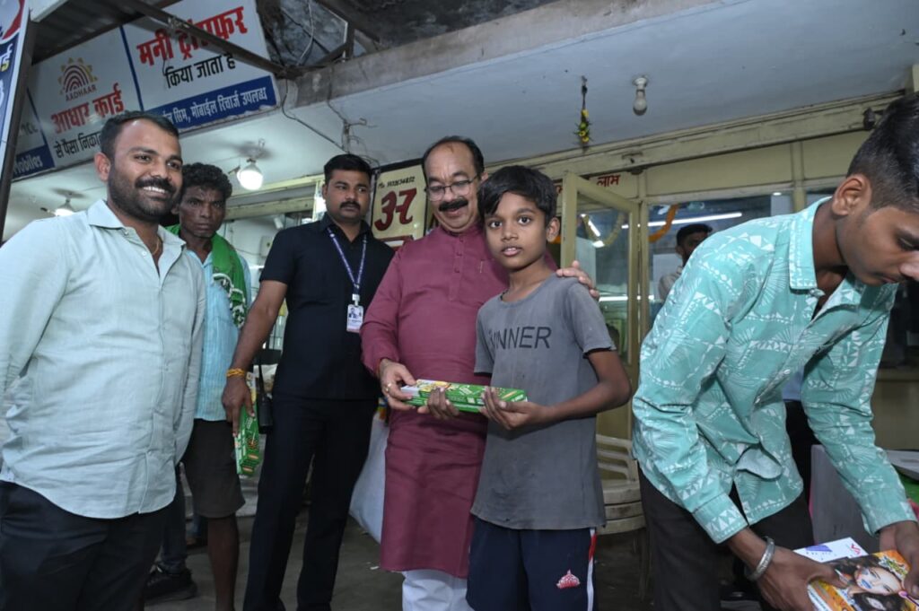 रायपुर। उप मुख्यमंत्री श्री अरुण साव आज राजधानी रायपुर के बाजार में दीवाली की खरीदी करने निकले, कालीबाड़ी चौक के पास वर्षों से दिये की रेहड़ी लगाने वाले छोटे व्यापारियों से उप मुख्यमंत्री साव ने दिये खरीदे, साथ ही उन्हें दीपावली की बधाई दी।*नन्हीं बच्चियों को हाथ मिलाकर दीपावली की बधाई देते दिखे डिप्टी सीएम साव*उप मुख्यमंत्री श्री साव ने कालीबाड़ी चौक के आसपास बैठे छोटे व्यापारियों से दिए और मूर्ति खरीदे, मिलने आए नन्हें बच्चों को हाथ मिलाकर दीपावली की बधाई दी।टिकरापारा के मुख्य मार्ग में बैठे छोटे व्यापारियों से डिप्टी सीएम साव ने पूजा सामग्री और फल- फूल खरीदे,फ़टाके की दुकान पर पहुंचे डिप्टी सीएम साव ने बच्चों एवं परिवार के लिए फटाके खरीदे।*बच्चों को फुलझड़ी के साथ डिप्टी सीएम अरुण साव ने दी दिवाली की बधाई*डिप्टी सीएम साव ने टिकरापारा स्थित फटाके की दुकान ने फटाके खरीदे, दुकान में आए नन्हें बच्चों से मिलकर उन्हें फुलझड़ी देते हुए दीपावली की शुभकामनाएं दी।