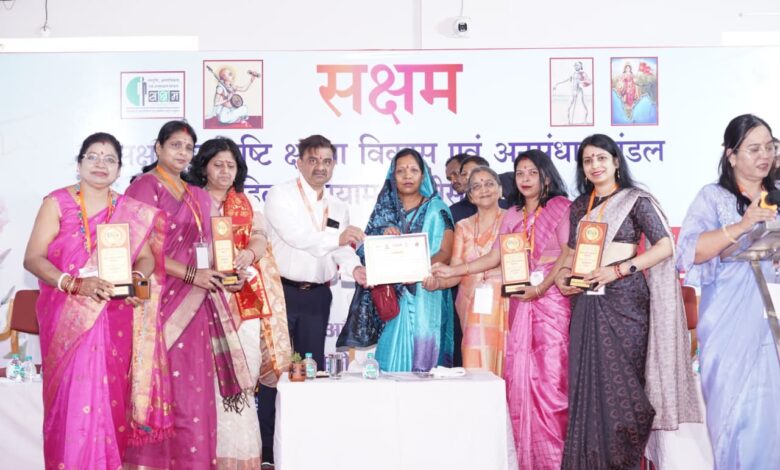 रायपुर। दिनांक 11.04.2026 दिन शनिवार को सक्षम महिला आयाम छत्तीसगढ़ प्रांत का वार्षिक कार्यक्रम “ महिला सम्मान समारोह “ संतोष अग्रवाल ग्रोथ अकैडमी कोपलवाणी मुखबधिर दिव्यांग संस्थान ग्राम सेमरिया रायपुर में संपन्न हुआ | उक्त कार्यक्रम में प्रदेश के मुख्यमंत्री की धर्मपत्नी आदरणीय कौशल्या साय जी मुख्य अतिथि स्वरूप उपस्थित हुई , विशिष्ट अतिथि में श्रीमती शताब्दी पांडेय जी , सक्षम के संगठन मंत्री श्रीराम जी राजवाड़े,प्रांताध्य्क्ष डॉ.सुरेंद्र शुक्ला जी,श्री आनंद सिंघानिया जी ,कोषाध्यक्ष श्री जैनेन्द्र जैन जी, सचिव श्री अनूप पांडे जी,सहसचिव श्रीमती अंजली चावड़ा, प्रचार प्रसार प्रमुख इंदिरा जैन जी,महिला आयाम प्रमुख श्रीमती पदमा शर्मा जी, युवा आयाम प्रमुख श्री शरद चन्द्रा जी व रायपुर से जिलाध्यक्ष डॉ. नम्रता सिरमौर जी सहित सतीश राजवाड़े,डॉ. विनय टंडन, संगीता कश्यप, श्री सुभाष जंघेल जी,बोधिसत्व धुरंधर , विवेक साहू, डॉ.नूतन साहू,महासमुंद से श्री राजेश नायक जी , श्रीमती उर्वशी साहू जी, सारंगढ़ से श्रीमती सरिता सिदार जी, रायगढ़ से श्रीमती ललिता पटेल जी, चाँपा से श्रीमती ज्योति सराफ जी, कोरबा से श्रीमती निर्मला शर्मा जी, अंबिकापुर से श्री मती मोहनी पटनायक जी, बलौदाबाजार- भाटापारा से अर्चना बघेल जी, डॉ. वर्षा मिश्रा जी, श्रीमती सती वर्मा जी ,बिलासपुर से श्रीमती विद्या साहू जी, श्रीमती शेफाली घोष कार्यक्रम की प्रत्यक्ष रूप में उपस्थित हुए |उक्त कार्यक्रम में विभिन्न क्षेत्रों में अपनी उत्कृष्ट सेवा प्रदान करने वाली 101 महिलाओं का सम्मान कोपलवाणी दिव्यांग छात्रो द्वारा बनाई गई बस्तर की चित्रकला सम्मान स्वरूप दिया गया | सक्षम प्रांत संगठन मंत्री श्री रामजी राजवाड़े जी का पंच परिवर्तन के विषय पर विशेष उद्बोधन रहा एवं डॉ.नम्रता सिरमौर द्वारा सक्षम महिला आयाम का विषय “जागरूक परिवार स्वस्थ शिशु” के विषय पर गहन व्याख्यान दिया गया | आदरणीय श्रीमती कौशल्या साय जी ने सक्षम द्वारा खड़े किए समाज में कार्यो की अत्यंत सराहना की व दिव्यांगों के प्रति समाज के अपने जिम्मेदारियों का स्मरण कराया | अपने उद्बोधन में उन्होंने महिला सशक्तिकरण को दिव्यांगों के सर्वांगीण विकास लिए आवश्यक बिंदु बताया | सक्षम परिवार आदरणीय कौशल्या साय जी की कार्यक्रम उपस्थिति के लिए आपका आभार व्यक्त करता है | सक्षम भारत समर्थ भारत जीते जीते रक्तदान – जाते जाते नेत्र दान देह दान महादान