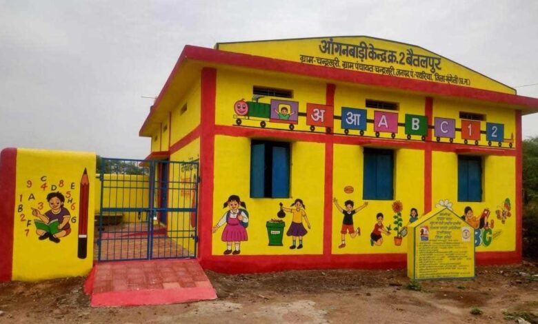 महात्मा गांधी राष्ट्रीय ग्रामीण रोजगार गारंटी योजना (मनरेगा) और महिला एवं बाल विकास विभाग के अभिशरण से निर्मित नवीन आंगनबाड़ी भवनों ने Building as Learning Aid (BALA) की अवधारणा को जमीनी स्तर पर साकार कर दिया है।11.69 लाख रुपए की लागत से निर्मित प्रत्येक भवन में दीवारों, फर्श, सीढ़ियों, दरवाजों और खुली जगहों को शिक्षण माध्यम के रूप में विकसित किया गया है। हिंदी-अंग्रेजी वर्णमाला, अंक, आकृतियाँ, दिशाएँ, जीव-जंतु, स्थानीय परिवेश और सामान्य ज्ञान से जुड़ी चित्रकारी बच्चों को खेल-खेल में सीखने का अवसर प्रदान कर रही है।अब आंगनबाड़ी भवन स्वयं एक शिक्षक बन चुके हैं जहाँ हर दीवार एक पाठशाला है।