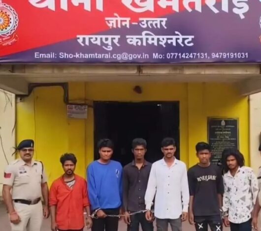 रायपुर। राजधानी रायपुर में नकबजनी के एक मामले का पुलिस ने खुलासा करते हुए छह आरोपियों को गिरफ्तार किया है। आरोपियों ने गोदाम का शटर तोड़कर जी.आई. क्लैप और ज्वाइंट बॉक्स सहित कुल लगभग 95 हजार रुपये का सामान चोरी किया था। पुलिस ने चोरी का माल बरामद कर सभी आरोपियों को न्यायिक रिमांड पर भेज दिया है। जानकारी के अनुसार प्रार्थी ने थाना खमतराई में रिपोर्ट दर्ज कराई थी कि रावांभाठा ट्रांसपोर्ट नगर स्थित के.वी. इंटरप्राइजेस के गोदाम का शटर तोड़कर अज्ञात चोरों ने अंदर रखे जी.आई. मोबिल क्लैप और ज्वाइंट बॉक्स की बड़ी मात्रा चोरी कर ली है। चोरी गए सामान में करीब 2950 नग क्लैप और 60 नग ज्वाइंट बॉक्स शामिल थे, जिसकी कुल कीमत लगभग 95 हजार रुपये बताई गई है। मामले में पुलिस ने अपराध क्रमांक 243/26 धारा 305 और 331(2) बीएनएस के तहत प्रकरण दर्ज कर जांच शुरू की। पुलिस उपायुक्त (नॉर्थ जोन) मयंक गुर्जर के निर्देश पर अतिरिक्त पुलिस उपायुक्त आकाश मरकाम और सहायक पुलिस आयुक्त उरला पूर्णिमा लामा के मार्गदर्शन में थाना प्रभारी जितेंद्र जायसवाल की टीम ने आरोपियों की तलाश तेज की। जांच के दौरान मुखबिर से सूचना मिली कि आरटीओ के पीछे देवारपारा क्षेत्र में कुछ युवक चोरी का सामान बेचने की फिराक में हैं। सूचना के आधार पर पुलिस ने घेराबंदी कर संदिग्ध जैन मरकाम उर्फ बजरंगी को हिरासत में लिया। पूछताछ में उसने अपने साथियों के साथ मिलकर चोरी की वारदात को अंजाम देने की बात स्वीकार की। इसके बाद पुलिस ने उसके अन्य साथियों को भी गिरफ्तार किया। गिरफ्तार आरोपियों में जैन मरकाम उर्फ बजरंगी (20), मन्नू सोनवानी (21), शेरा नागरची (22), शिवा नागरची (18), ओमप्रकाश उर्फ कृष्णा भारती (21) और गोपी नेताम (30) शामिल हैं। पुलिस ने बताया कि आरोपियों में से मन्नू सोनवानी पहले आर्म्स एक्ट और लूट के मामलों में जेल जा चुका है, जबकि ओमप्रकाश भारती का भी आपराधिक रिकॉर्ड रहा है। सभी आरोपियों से पूछताछ के बाद चोरी किया गया सामान भी बरामद कर लिया गया है। पुलिस ने सभी आरोपियों को गिरफ्तार कर न्यायालय में पेश किया, जहां से उन्हें न्यायिक रिमांड पर जेल भेज दिया गया है। मामले में आगे की जांच जारी है और यह पता लगाया जा रहा है कि कहीं यह गिरोह अन्य चोरी की घटनाओं में भी शामिल तो नहीं है।