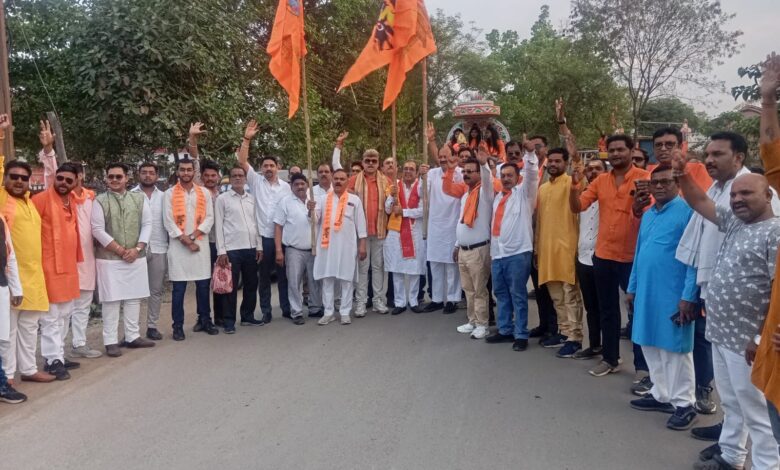 हनुमान जन्मोत्सव पर धर्म जागृति मंच की विशाल शोभायात्रा में हजारों लोग हुए शामिल