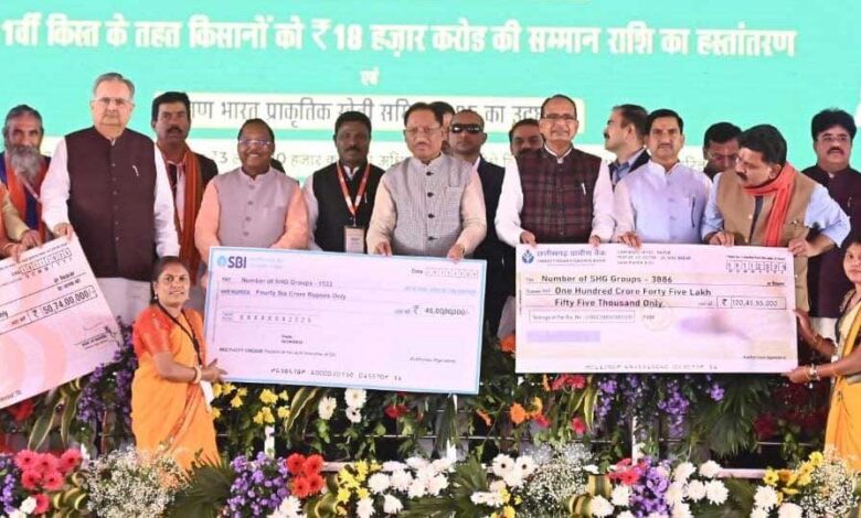 रायपुर. छत्तीसगढ़ के धमतरी जिले में बुधवार का दिन ग्रामीण आजीविका, महिला उद्यमिता और वित्तीय समावेशन को नई ऊर्जा देने वाला दिन रहा। जहां प्रधानमंत्री किसान सम्मान निधि की 21वीं किश्त के राज्य स्तरीय वितरण कार्यक्रम के अवसर पर केंद्रीय ग्रामीण विकास मंत्री श्री शिवराज सिंह चौहान ने मुख्यमंत्री श्री विष्णु देव साय, उपमुख्यमंत्री श्री विजय शर्मा सहित अन्य जनप्रतिनिधियों और हजारों ग्रामीण महिलाओं की उपस्थिति में बहुप्रतीक्षित एकीकृत राज्य ब्राण्ड छत्तीसकला तथा डिजिटल फाइनेंस बुकलेट का विमोचन किया।