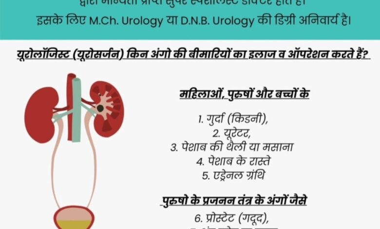 *रायपुर – यूरोलॉजी सोसाइटी ऑफ इंडिया हर वर्ष 13 अक्टूबर को यूरोलॉजी जागरूकता दिवस मनाता है । इसका उद्देश्य सामान्य जनता को यूरोलॉजी की जानकारी देने के साथ ही यूरोलॉजी से संबंधित बीमारियों के होने पर एक यूरोलॉजिस्ट से ही उचित परामर्श लेकर जांच व उपचार करने के लिए जागरूक किया जाता है । आमतौर पर देखा जाता है कि लोगों को यह जानकारी ही नहीं रहती की किसी भी तरह की बीमारी होने पर उनके विशेषज्ञ डॉक्टर के पास ही जाना चाहिए ताकि समय में उचित इलाज प्राप्त किया जा सके।13 अक्टूबर को यूरोलॉजी जागरुकता दिवस के माध्यम से आमजनों को मूत्र संबंधी रोगों के बारे में समझाने और जागरूक करने के लिए मूत्र रोग विशेषज्ञों द्वारा महती भूमिका निभाई जाती है। इंटरनेट क्रांति के इस युग में लोगों में जागरूकता का आभाव है। मूत्र संबंधी बीमारियां लोगों के जीवन प्रभाव डाल सकती हैं। इस सम्बंध में आज जागरूकता सीमित है। इस क्षेत्र में पेशेवरों के रूप में, हमारी जिम्मेदारी है कि हम जनता को विभिन्न मूत्र संबंधी विकारों के बारे में सूचित करें, जिनमें मूत्र पथ के संक्रमण जैसे सामान्य मुद्दों से लेकर प्रोस्टेट कैंसर या गुर्दे की पथरी जैसी अधिक जटिल स्थितियां शामिल हैं। रोगियों के लिए योग्य विशेषज्ञों से समय पर उपचार लेने के महत्व को समझना आवश्यक है।यूरोलॉजी जागरूकता दिवस उन योग्यताओं को भी स्पष्ट करने के लिए है जो एक सक्षम मूत्र रोग विशेषज्ञ की पहचान कराती है। हममें से जो लोग यूरोलॉजी में एमसीएच या डीएनबी या एफआरसीएस रखते हैं, उन्होंने कठोर प्रशिक्षण प्राप्त किया है और अपने रोगियों को सर्वोत्तम संभव देखभाल प्रदान करने के लिए आवश्यक कौशल से लैस हैं।यूरोलॉजिस्ट या यूरोसर्जन नेशनल मेडिकल कमिशन (एनएमसी पूर्व में एमसीआई द्वारा मान्यता प्राप्त सुपर स्पेशलिस्ट डॉक्टर होते हैं। इसके लिए एमसीएच यूरोलॉजी या डीएनबी यूरोलॉजी की डिग्री अनिवार्य है। यूरोलॉजिस्ट यूरोसर्जन महिलाओं, पुरुषों और बच्चों के गुर्दा,यूरेटर, पेशाब की थैली या मसाना,पेशाब के रास्ते, एड्रिनल ग्रंथि एवं पुरुषों के प्रजनन तंत्र के अंगों जैसे प्रोस्टेट, अंडकोष, लिंग अंगों की बीमारियों का इलाज ऑपरेशन करते हैं। उपरोक्त अंगों के कैंसर, गांठ, पथरी, इंफेक्शन,रुकावट खराबी ,चोट, जन्मजात बीमारियों व अन्य बीमारियों के इलाज एवं ऑपरेशन के लिए यूरोलॉजिस्ट से मिलना चाहिए। अप्रशिक्षित एवं अल्प प्रशिक्षित लोगों से इलाज न कराकर अपने व अपने प्रियजनों के लिए सही डॉक्टर का चयन करें।